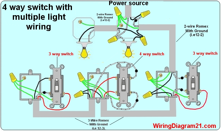 4 Way Switch Wiring Diagram | House Electrical Wiring Diagram